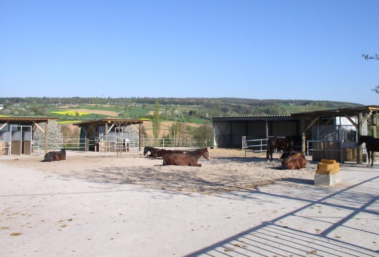 Helle und Luftige Liegeflächen mit sehr großen befestigten Paddogflächen. Während der Weidesaison können die Pferde direkt auf die Weide laufen.